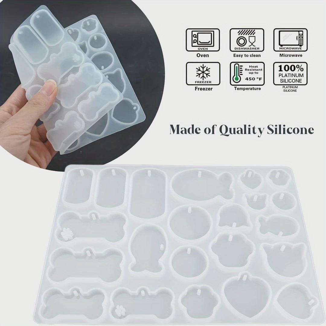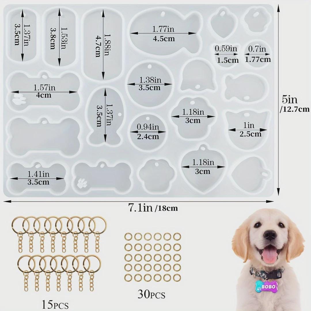 15pcs Silicone Resin Pet Tag Resin Mold with Metal Hangers to make Dog & Cat Keychains or Pendants