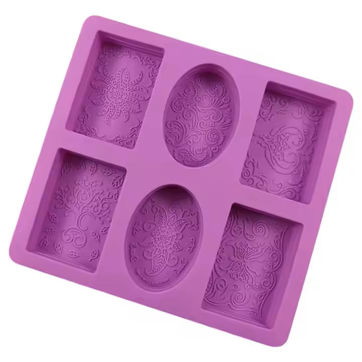 6 Cavity 3D Lace Pattern Silicone Mold for Handmade Soap Making