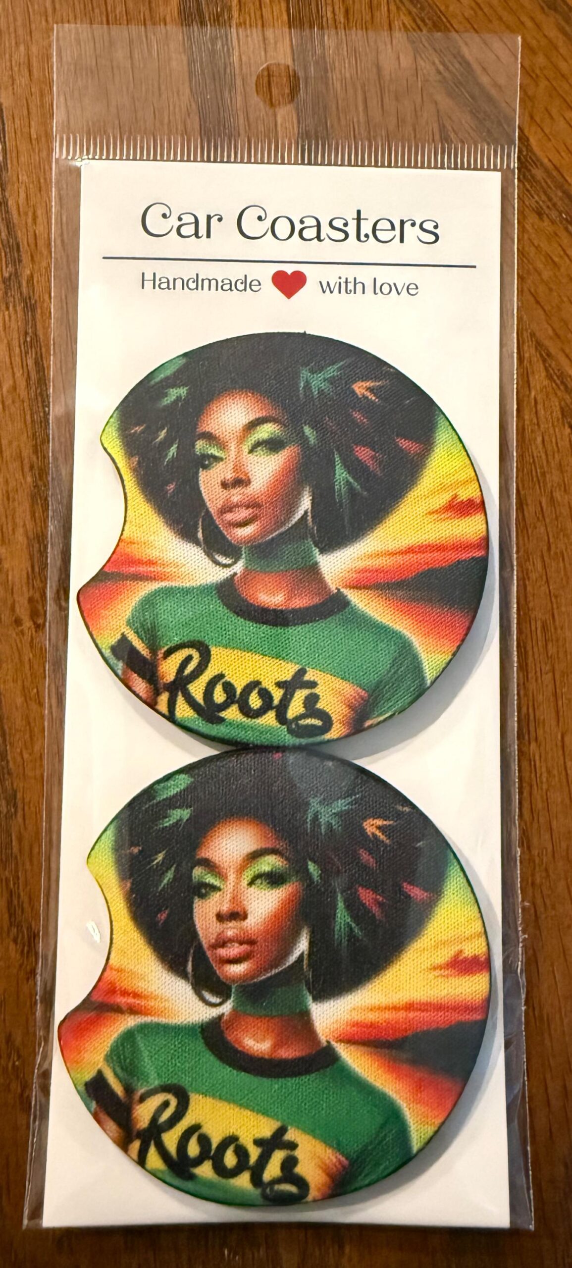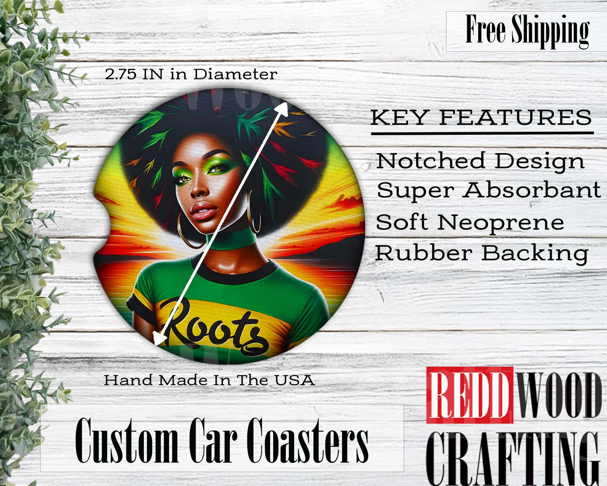 Black Woman Neoprene Car Coasters, Roots Design (Set of 2)