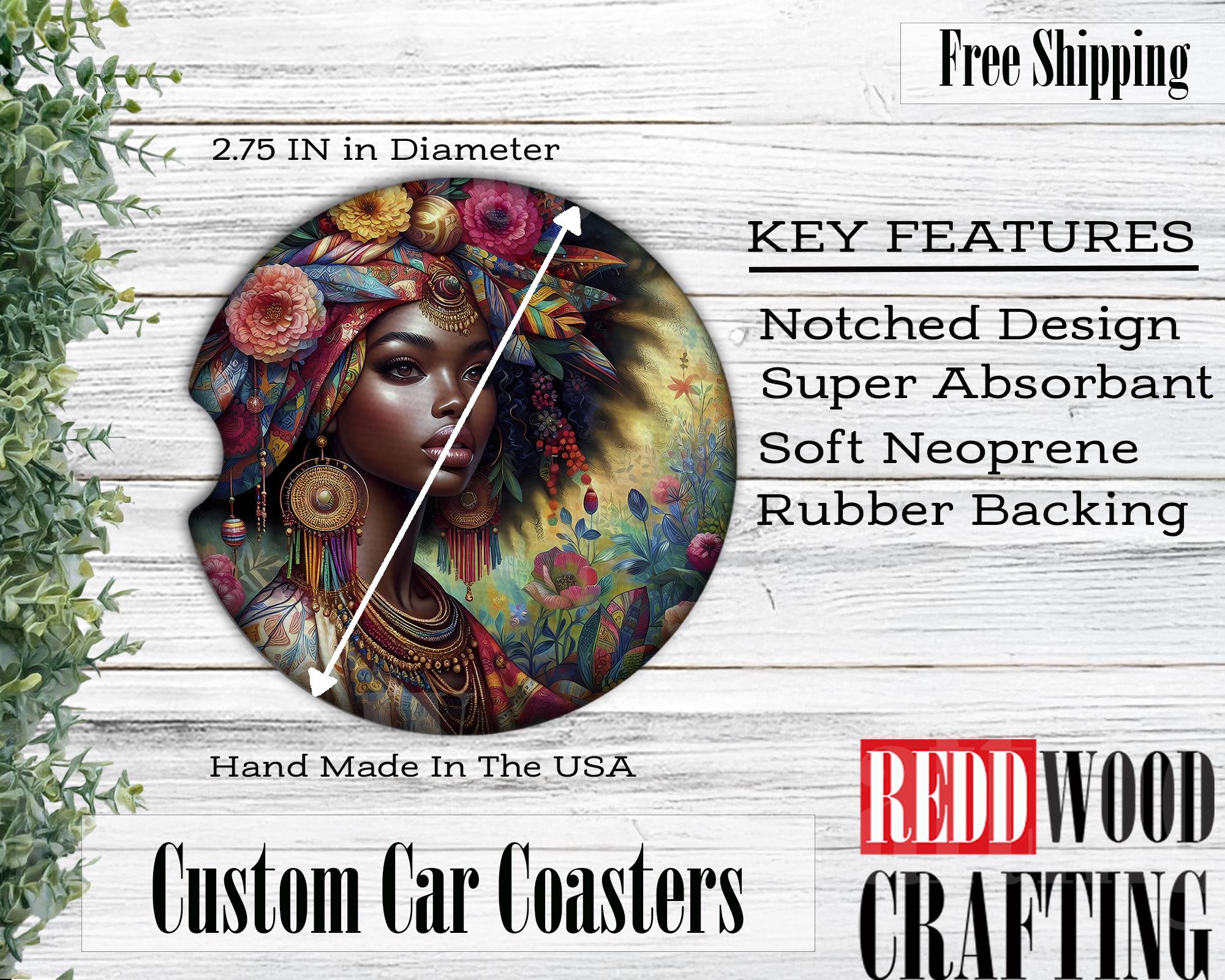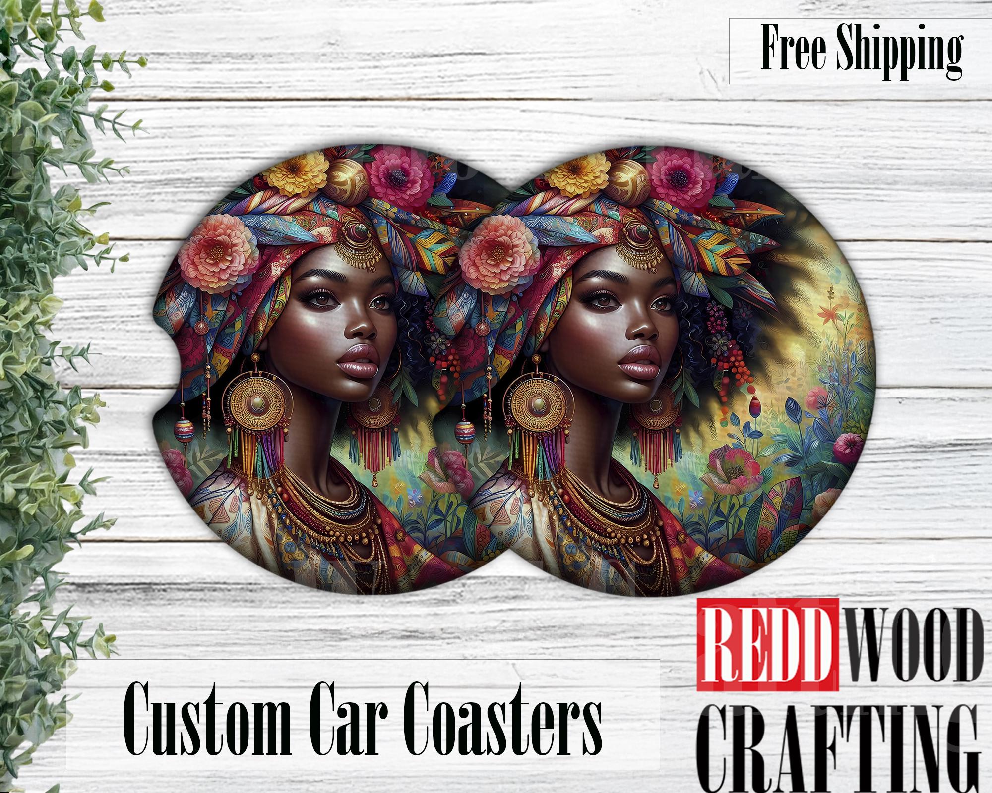 Bohemian Black Woman, African American Car Coasters, Car Cup Holder Accessories (Set of 2)
