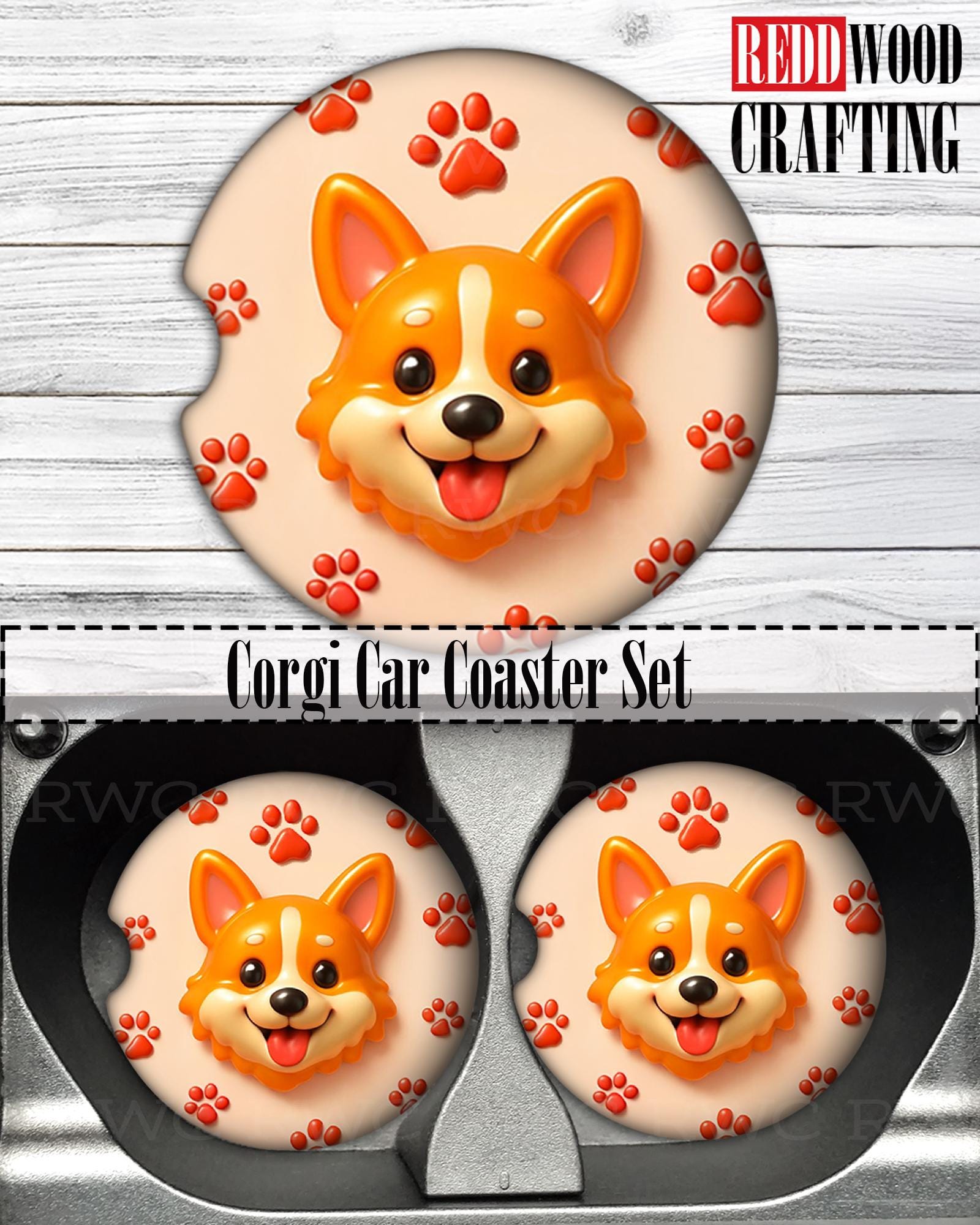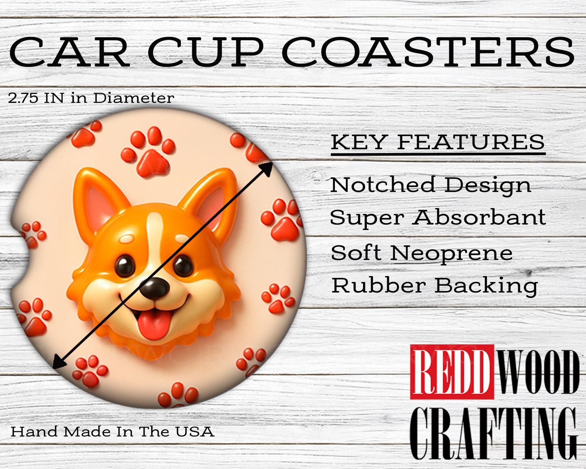 Corgi Car Coasters (Set of 2), Neoprene Cup Holder Accessories
