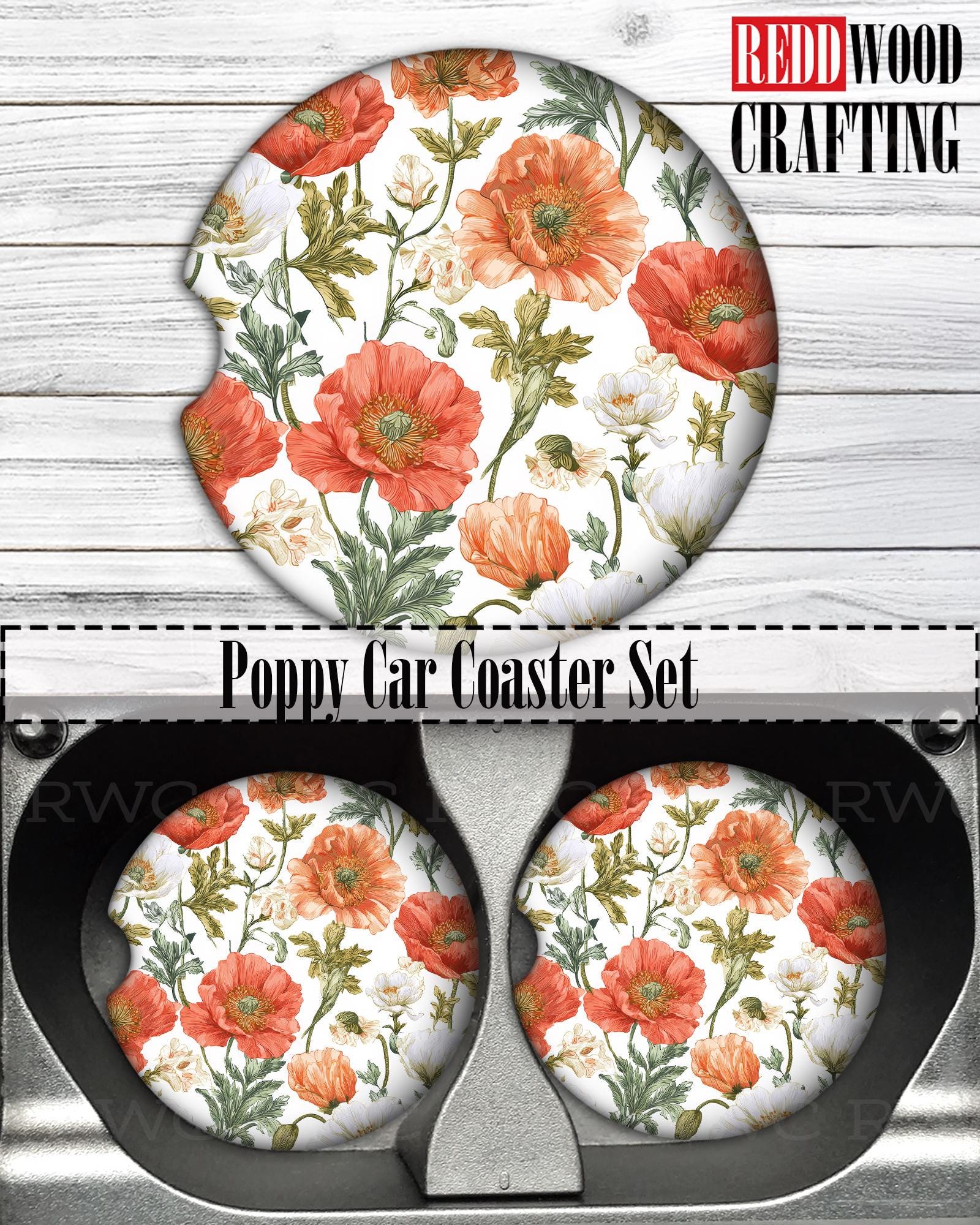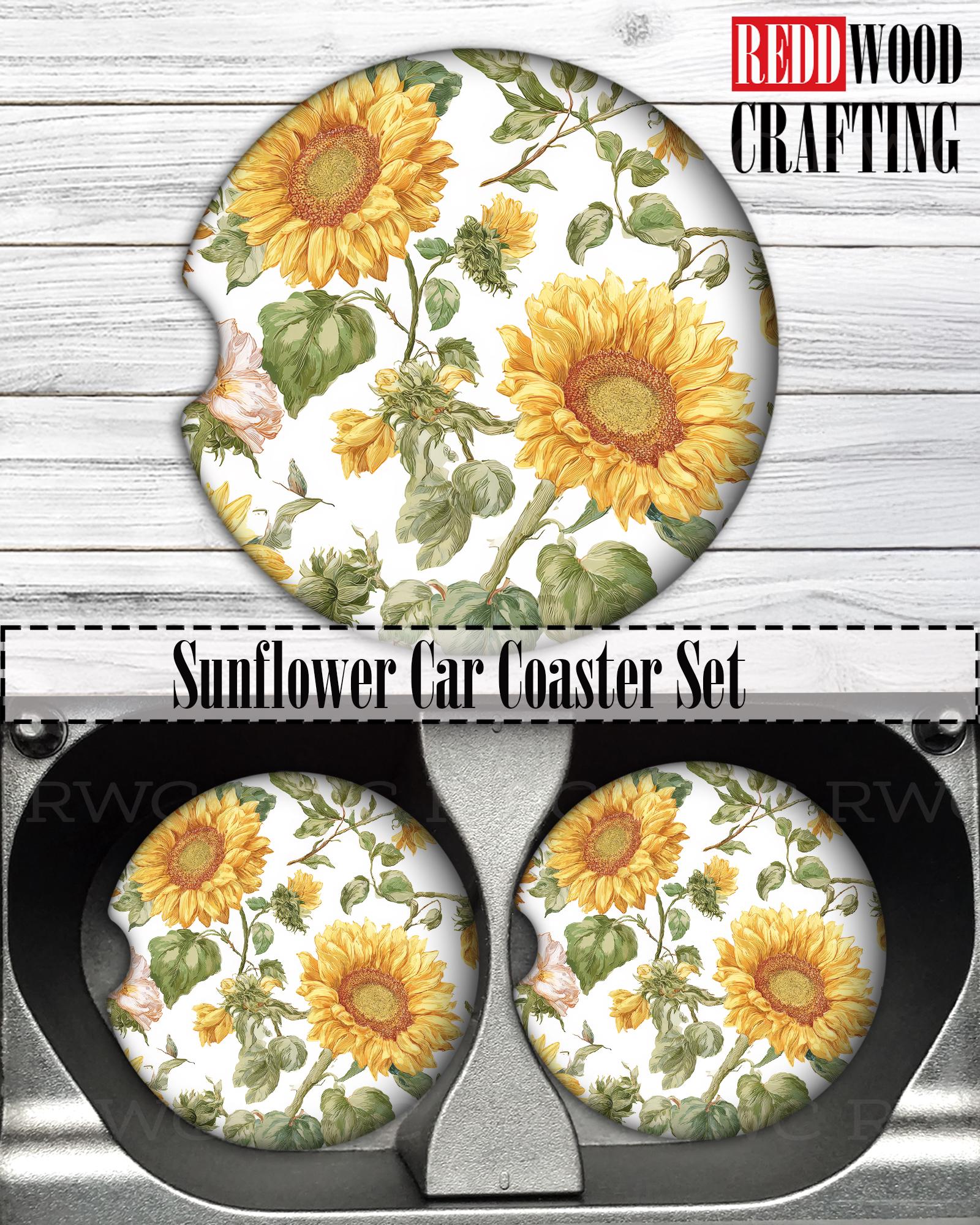 Flower Car Coasters (Set of 2), Neoprene Cup Holder Accessories – 8 Options