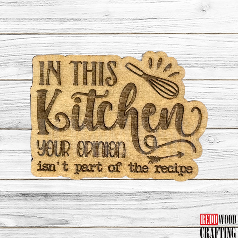 “In This Kitchen Your Opinion Isn’t Part of the Recipe” Wooden Kitchen Magnet
