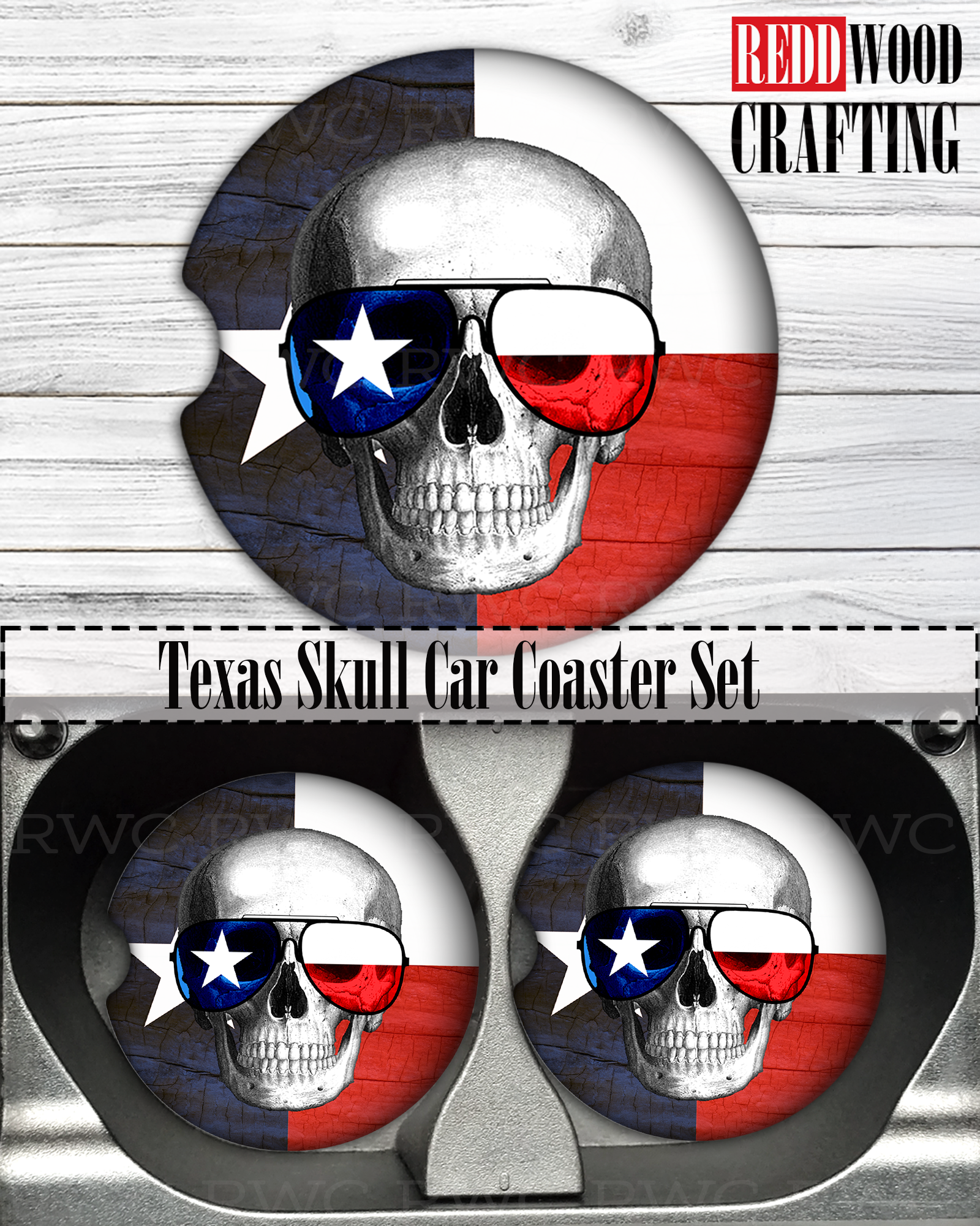 Texas Skull Car Coaster Set