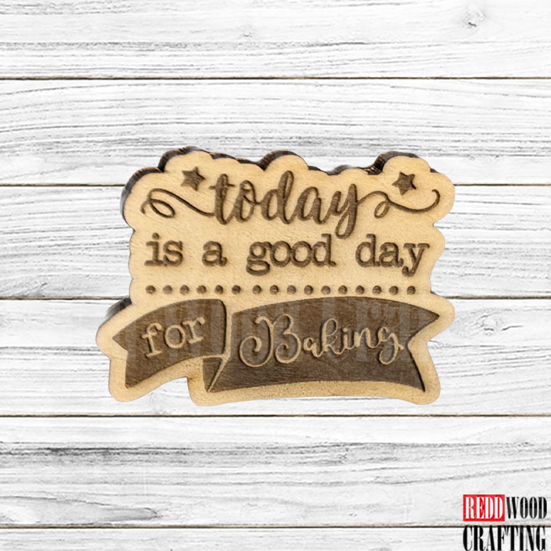 Celebrate the joy of baking with this beautifully engraved wooden magnet, perfect for adding a cozy touch to your kitchen. Featuring the cheerful phrase “Today Is a Good Day for Baking”, the design blends elegant script and clean block fonts with decorative stars and a banner accent. Its organically shaped silhouette enhances its handcrafted, rustic charm.