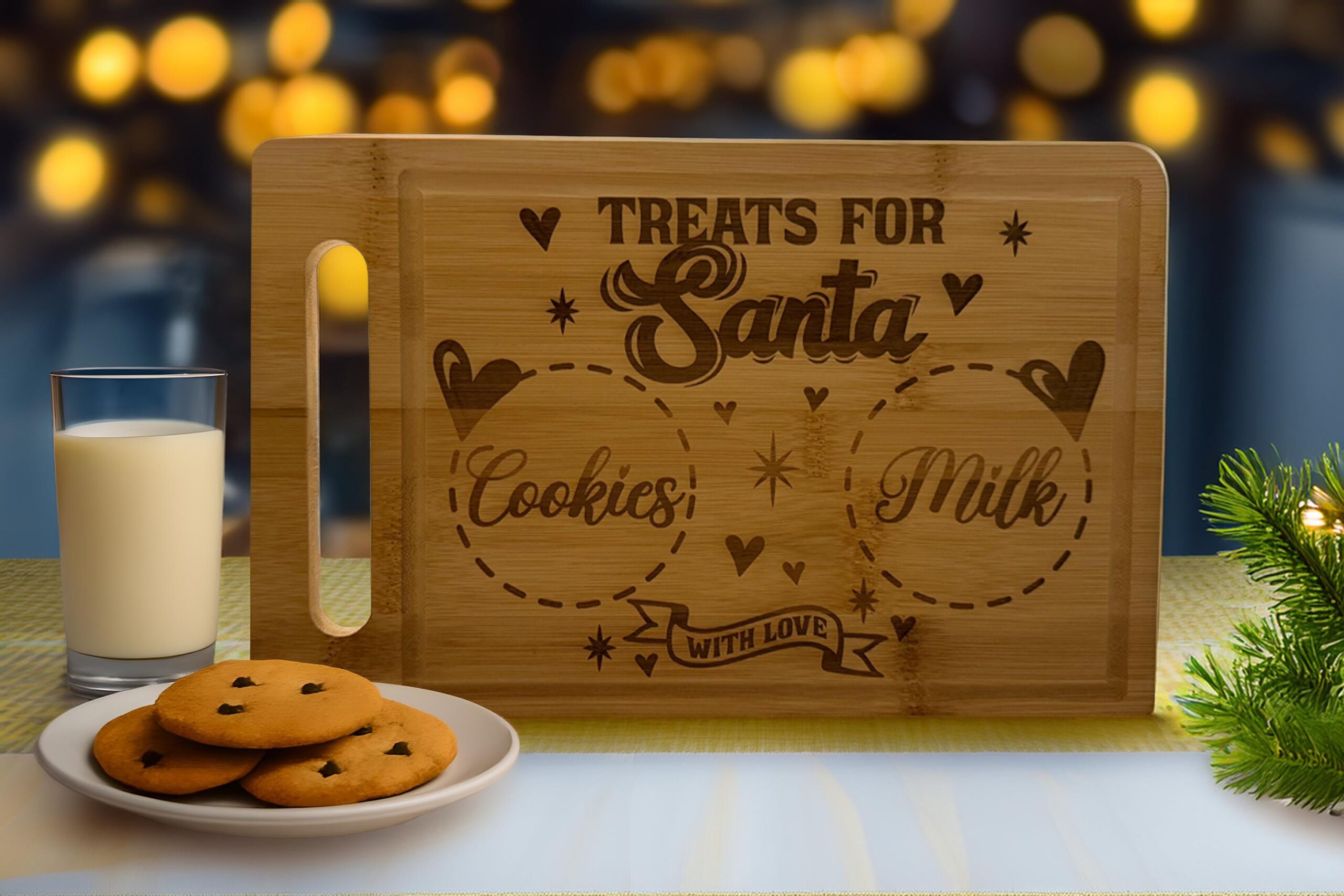 Festive Design: Engraved with “Treats for Santa” and decorative holiday accents